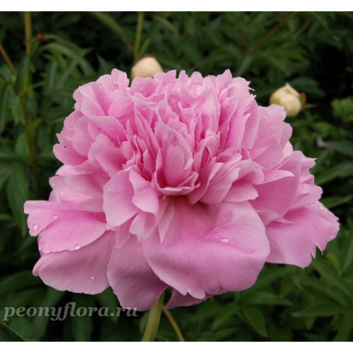 Внутривидовой гибрид p.lactiflora, тетраплоид. Махровый розовидный, сразу после роспуска плоской формы, по мере цветения цветок становится высокий и очень крупный. Розовый, мягкого тона, с легким оттенком лососевого изнутри. Цветы тяжелые. Куст требует поддержки. Ароматный. Среднепозднего срока цветения.