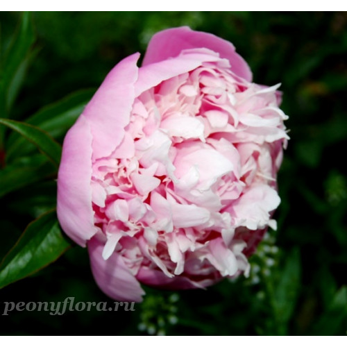 Внутривидовой гибрид p. lactiflora (Marie Crousse x Mrs. Livingston Ferrand). Махровый, розовидный, высокой формы.. Лавандово-розовый, с блеском, края петалодий светлые. Нежный аромат. Поздний срок цветения..