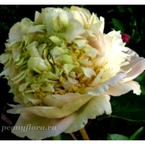 Межвидовый гибрид, тетраплоид. Цветок бомбовидной формы, крупный, плотный, размер цветка варьируется по годам, может достигать. Цвет очень необычный, сложный, изменчивый. Распускается зеленовато-желтым, по мере цветения становится почти белым с оттенками. Центральная бомбовидная часть цветка состоит из узких петалодий трех основных цветов и оттенков: белый, кремово-желтый и зеленоватый. Срок цветения поздний для гибридов - вторая декада июня. Окраска, размер и форма цветка, характерная сорту, полностью проявляется на 3-4-й сезон цветения. Коллекционный сорт, пока редкий.