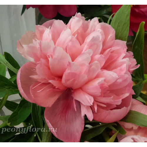 Гибрид. Махровый бомбовидный. Яркий, розово-лососевый. Выгорает до цвета топленого молока. Цветение длительное. Аромат легкий. Ранний срок цветения.