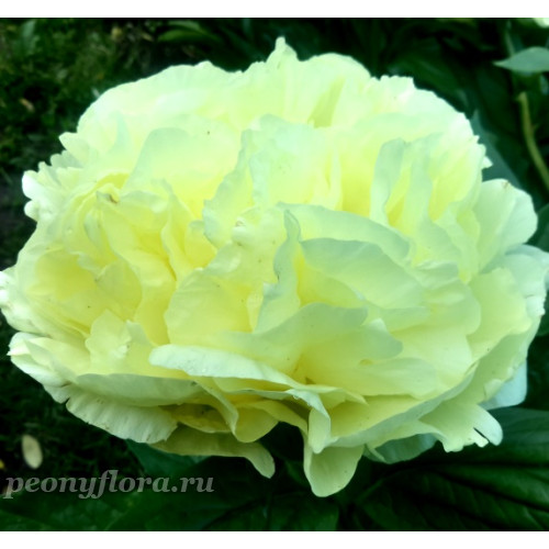 Махровый, полушаровидный, красиво сложен. Д=16 см, Н= 70-80см. Очень нежного лимонно-желтого цвета. Пестики с красными рыльцами. Стебли прочные. Листья широкие, крупные. Ранний - средний срок цветения. Очень красивый цветок. В 2016 году стал чемпионов Выставки КЦМ.